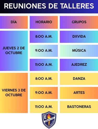 Se les solicita revisar con atención la lista de talleres para verificar si el nombre de su hijo(a) aparece inscrito en alguno de ellos. Asimismo, les recordamos que es de carácter obligatorio presentarse a las reuniones de talleres que se llevarán a cabo los días: